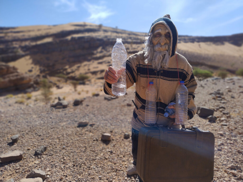 Au Km 40, dans un passage traversant les gorges rocheuses, un vieillard a été aperçu sur le bord de la piste en train de quémander de l’eau. Laure et Tanguy – n°367 se sont arrêtés pour lui donner une bouteille avant de s’apercevoir qu’il s’agissait du directeur de course déguisé. La farce a remporté son petit succès puisque le personnage a figuré parmi la liste des objets insolites relevés par certains équipages !